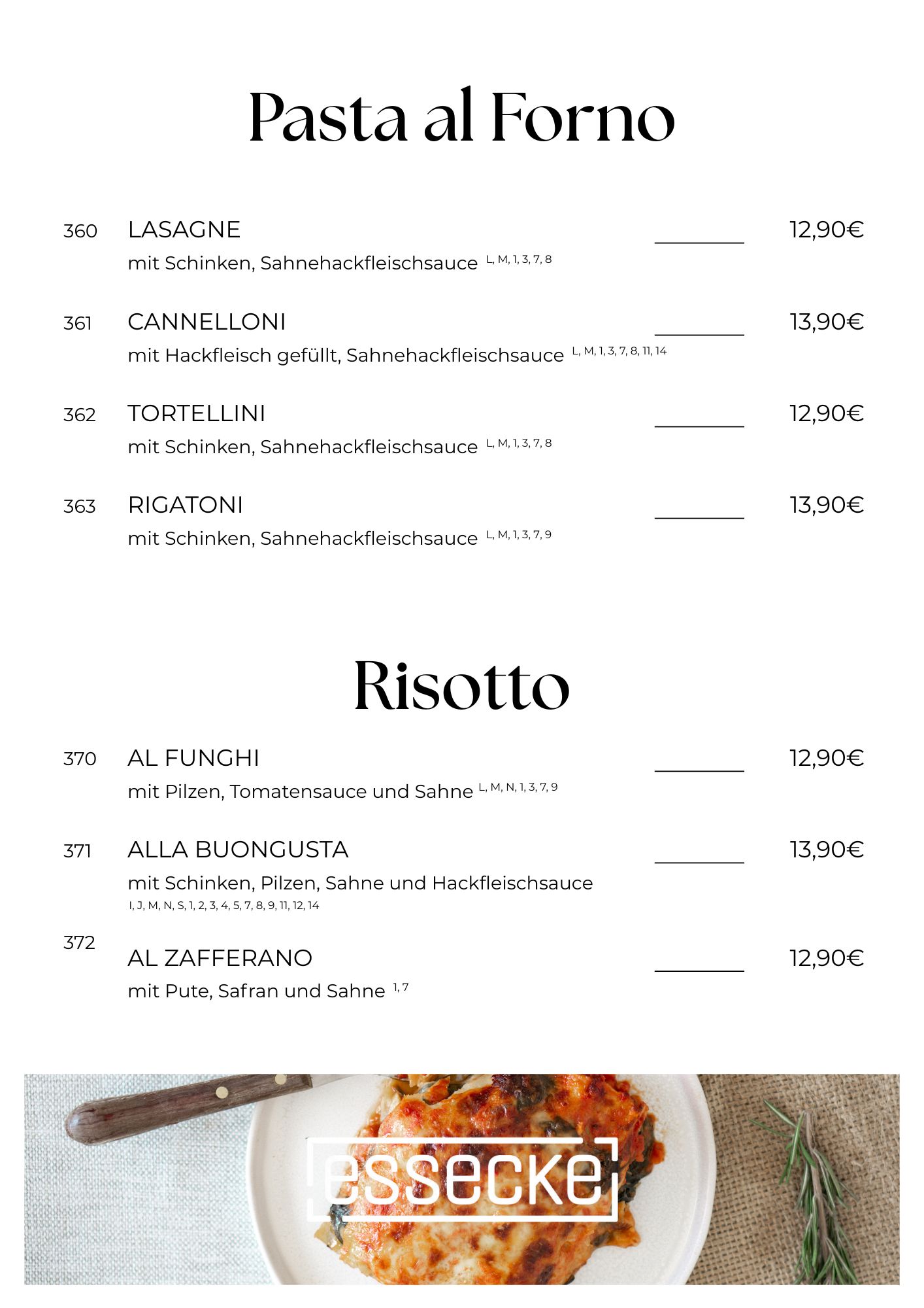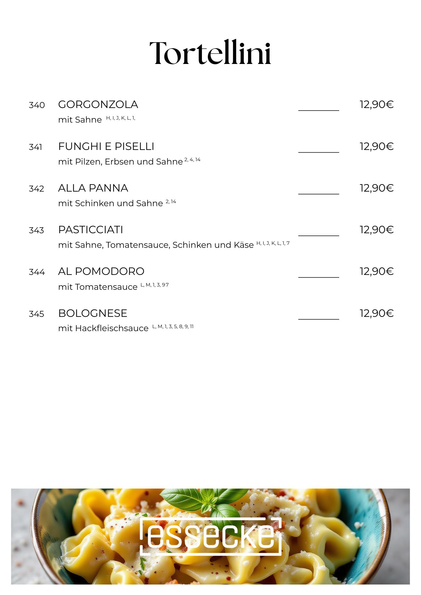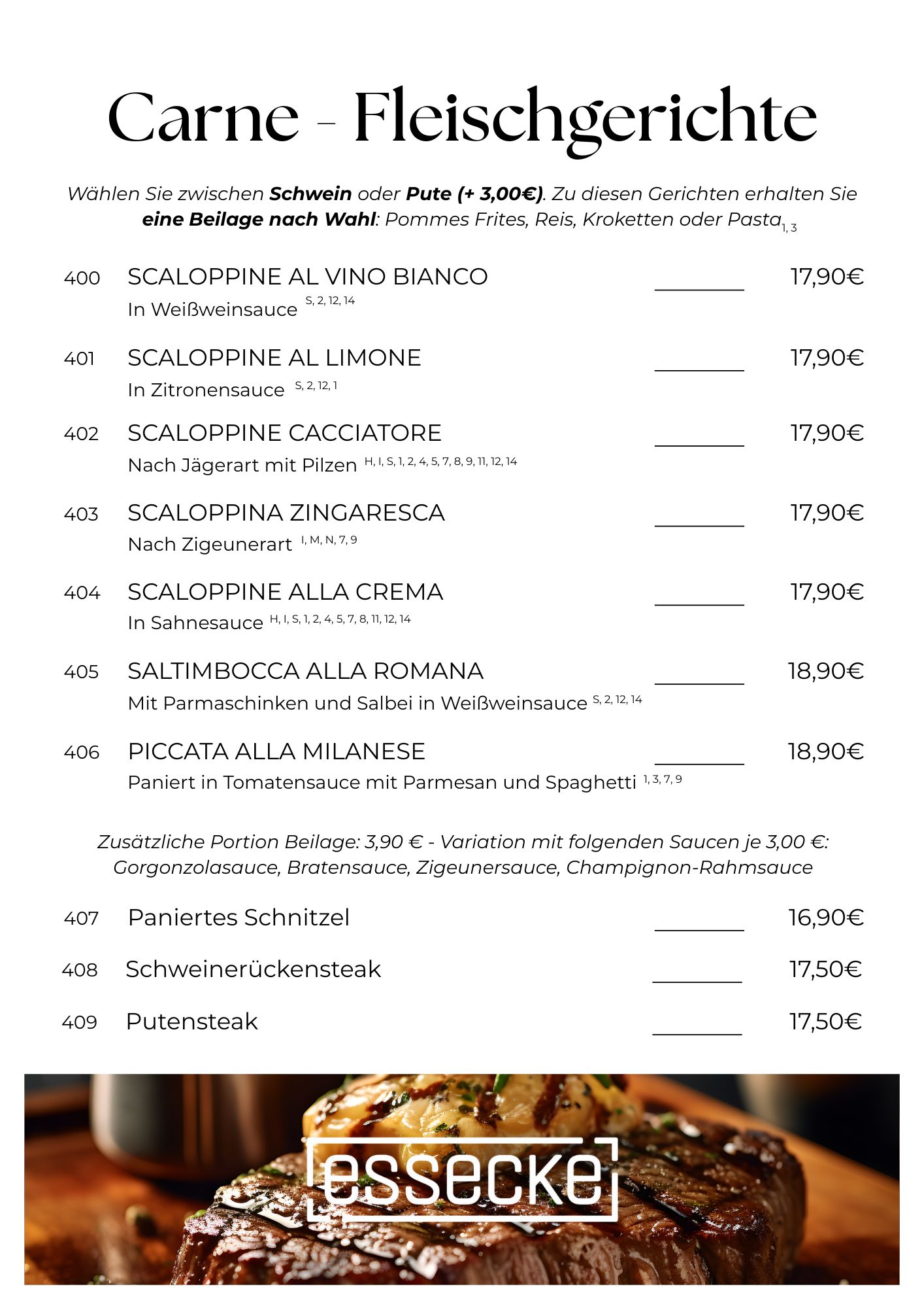 Unsere Speisekarte bietet eine breite Auswahl an italienischen Klassikern. Von Pasta über Pizza bis hin zu saisonalen Spezialitäten.