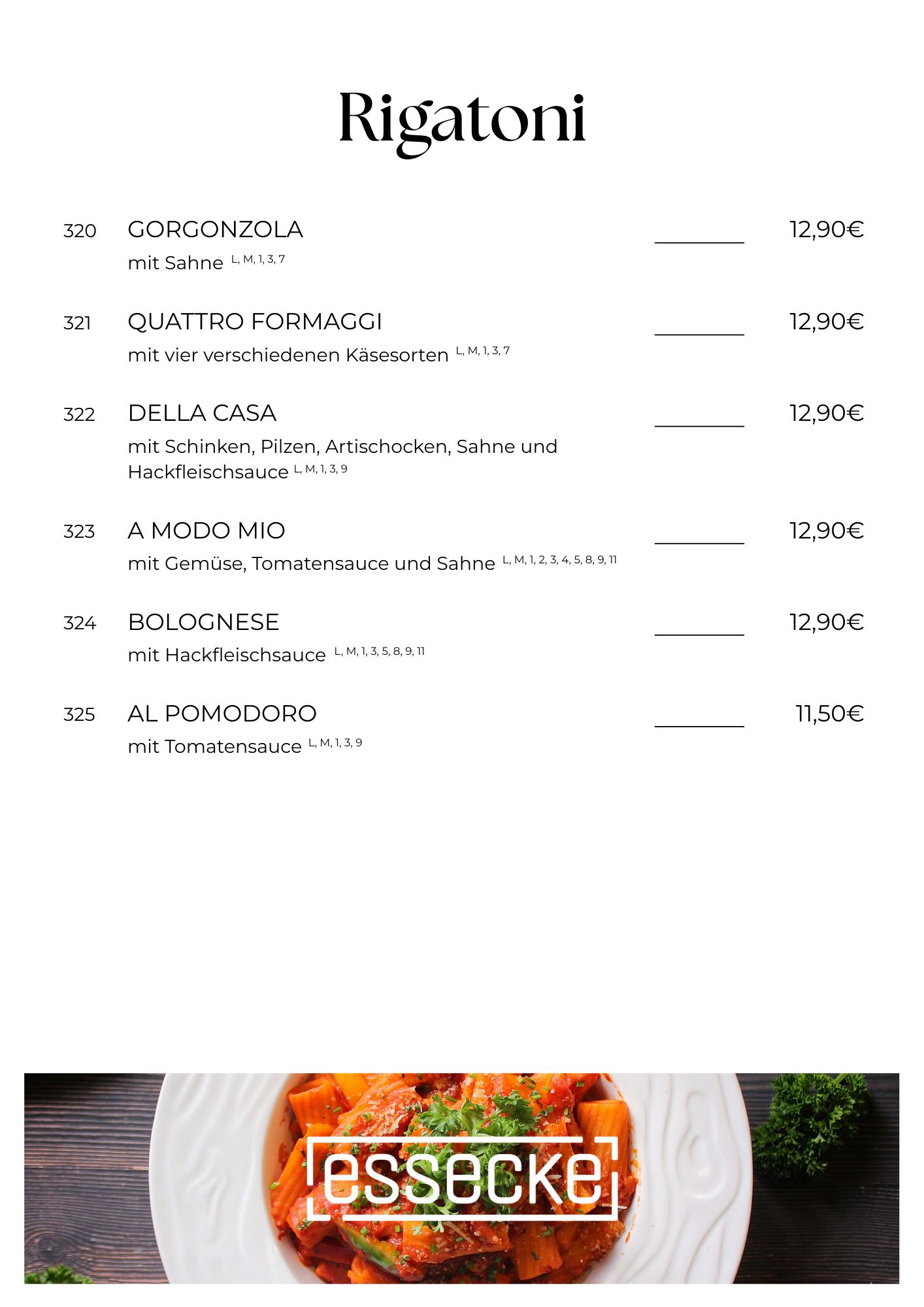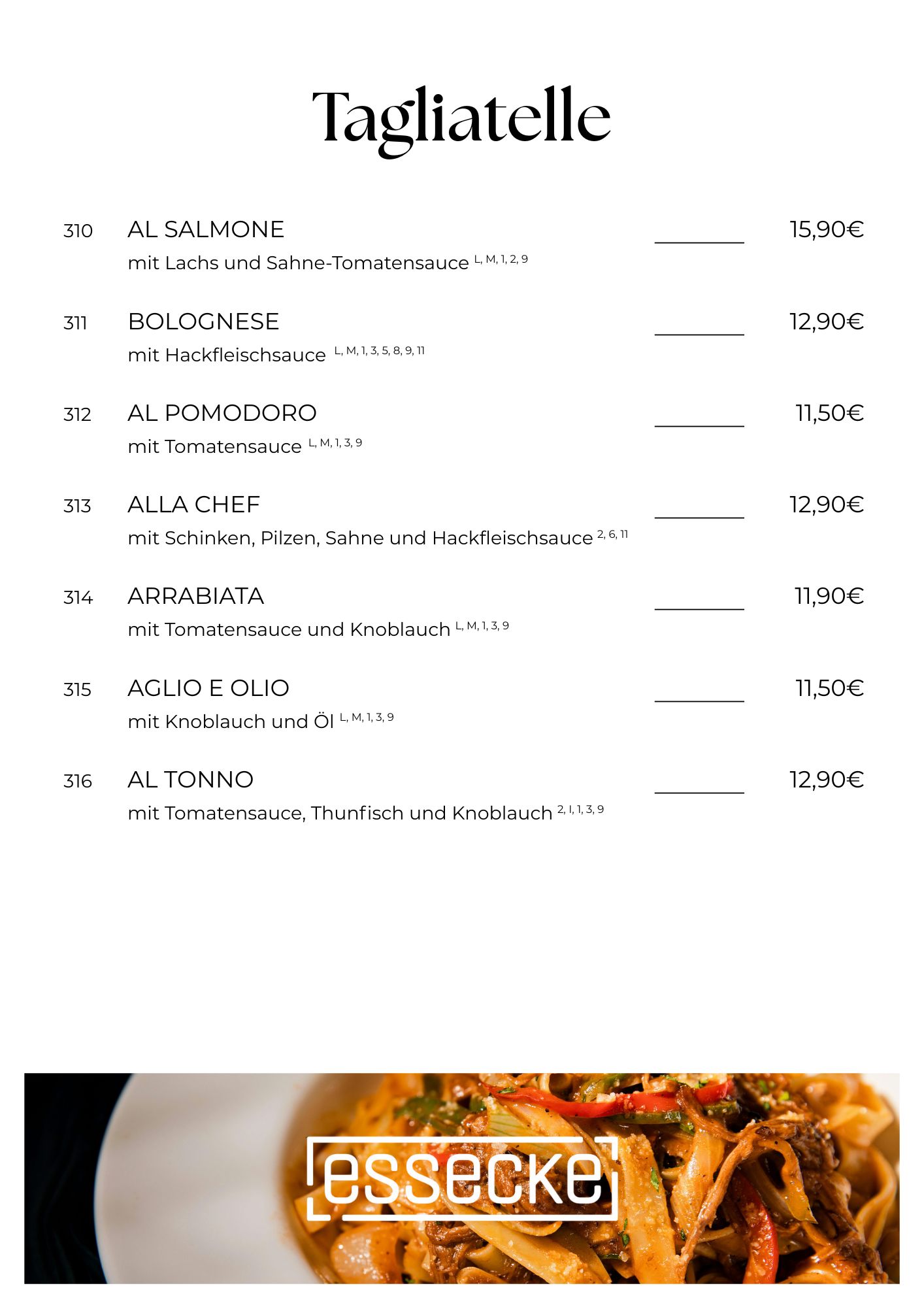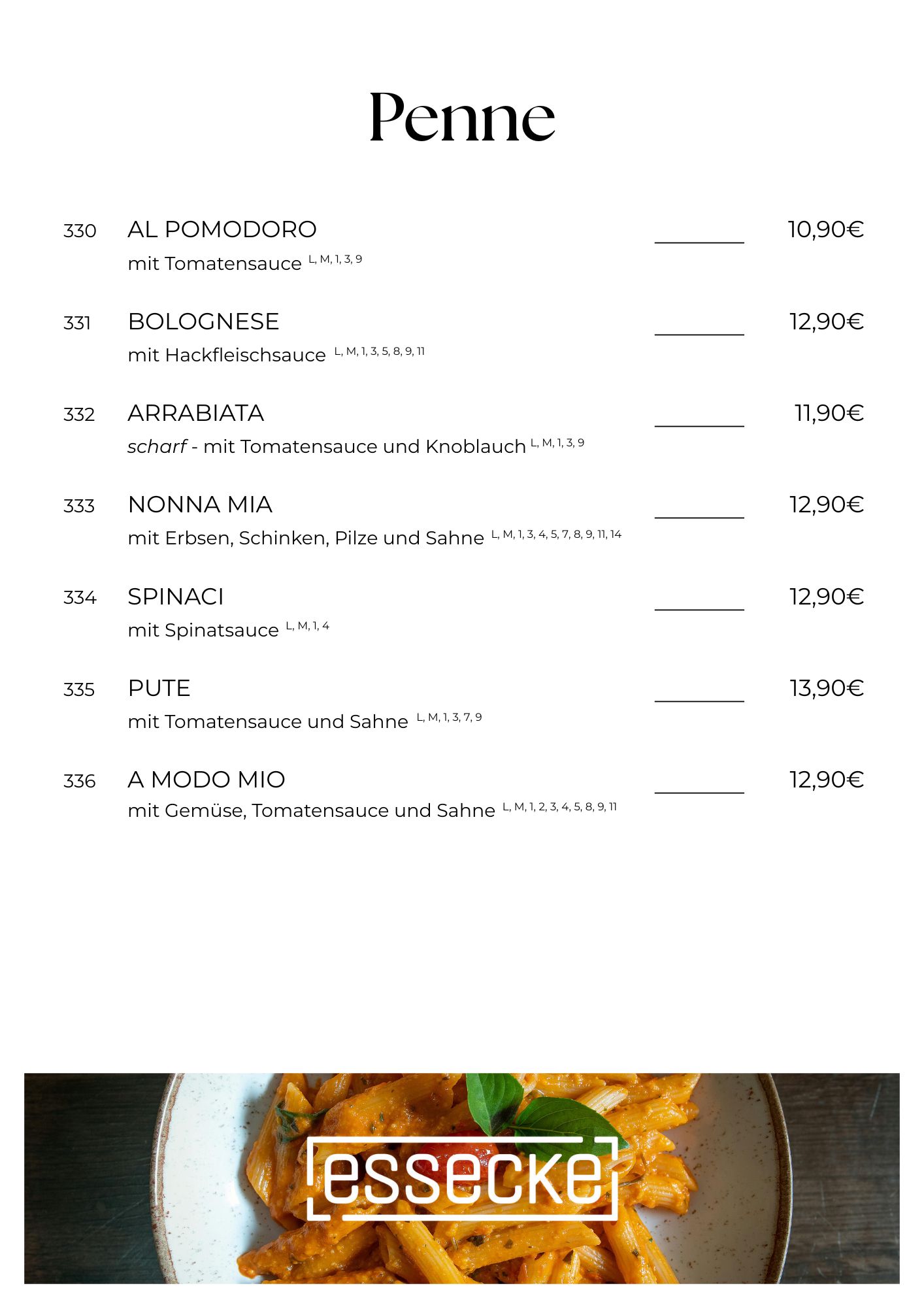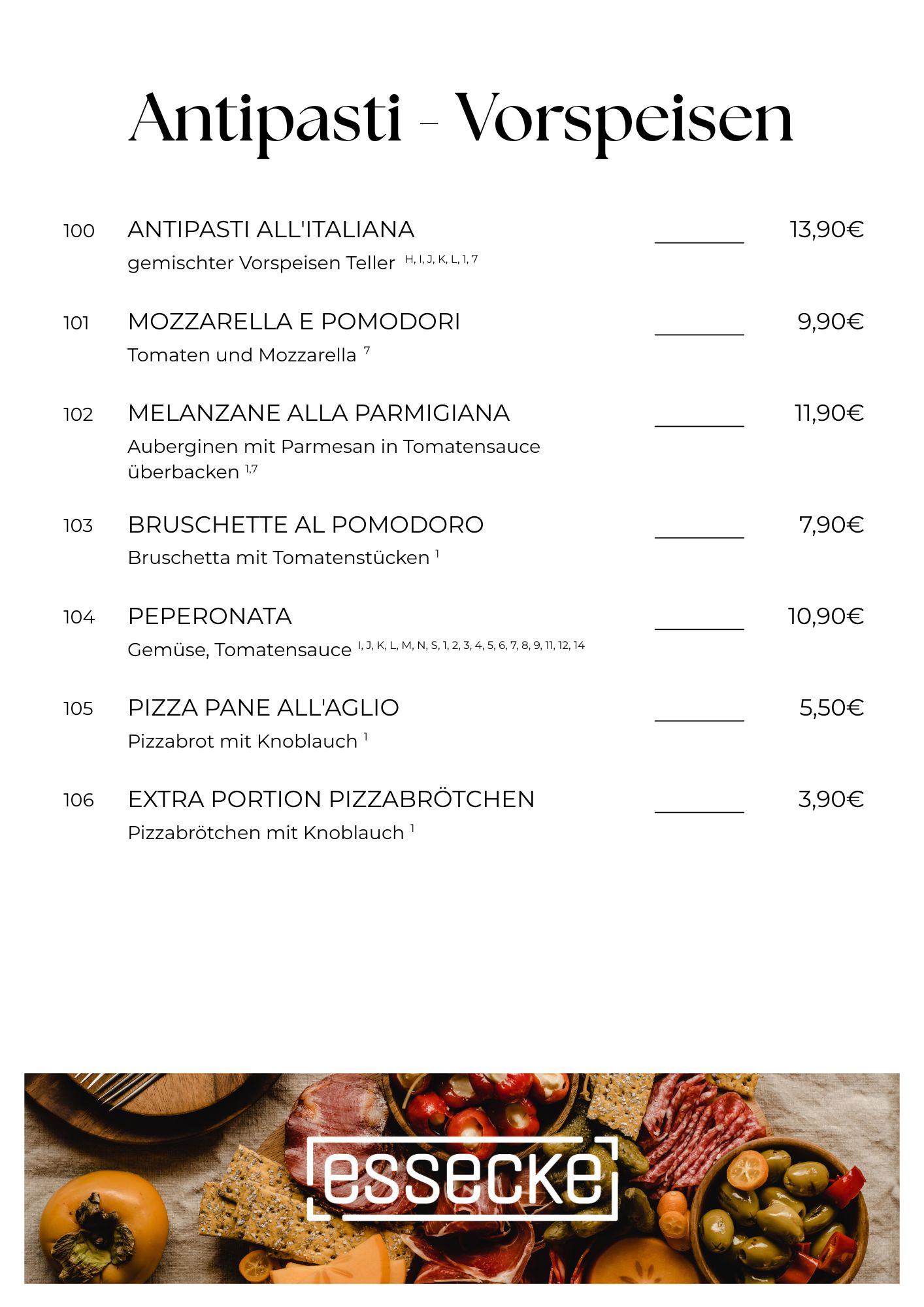 Unsere Speisekarte bietet eine breite Auswahl an italienischen Klassikern. Von Pasta über Pizza bis hin zu saisonalen Spezialitäten.